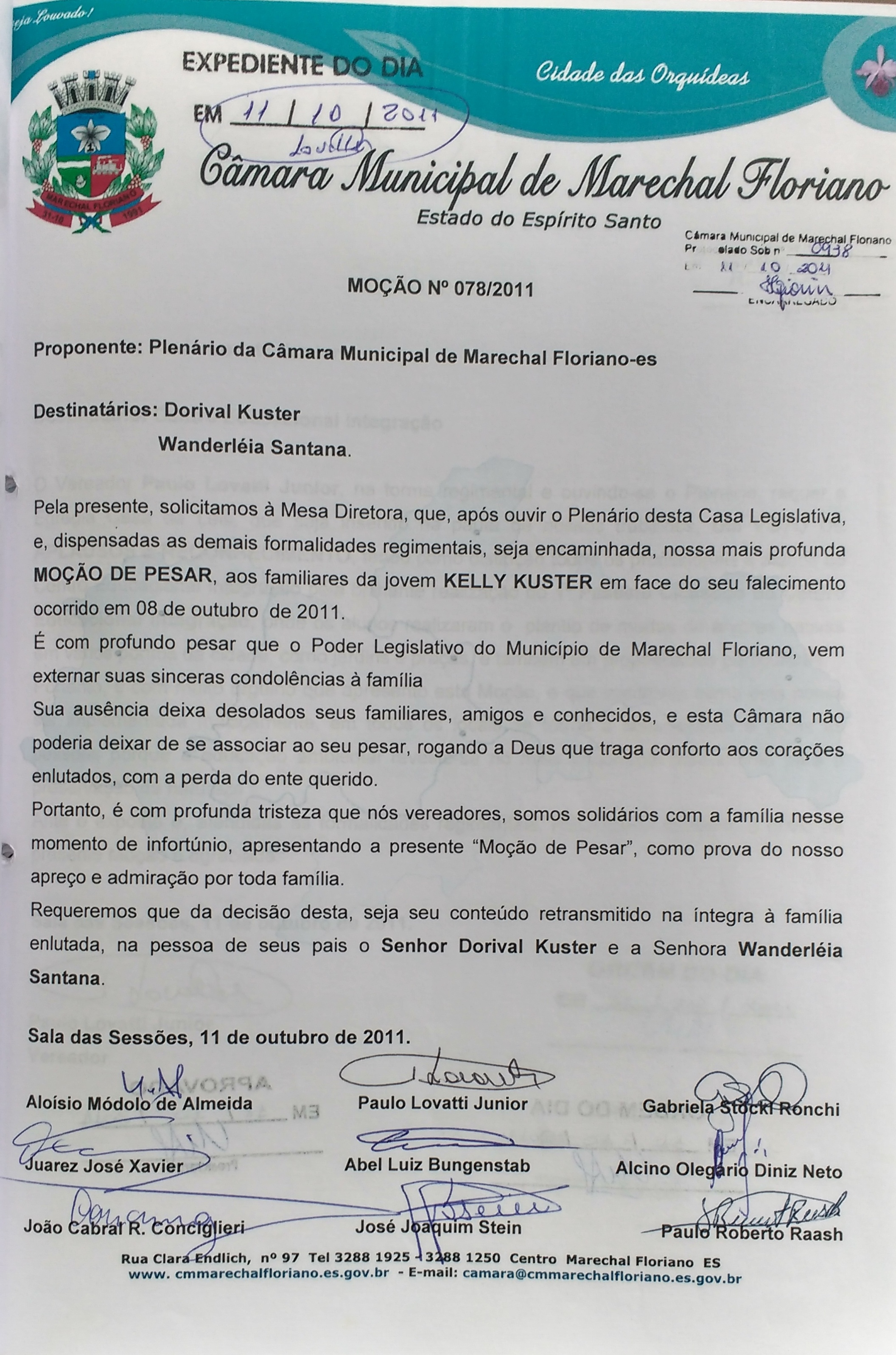 Protocolo: 938/2011, Data Protocolo: