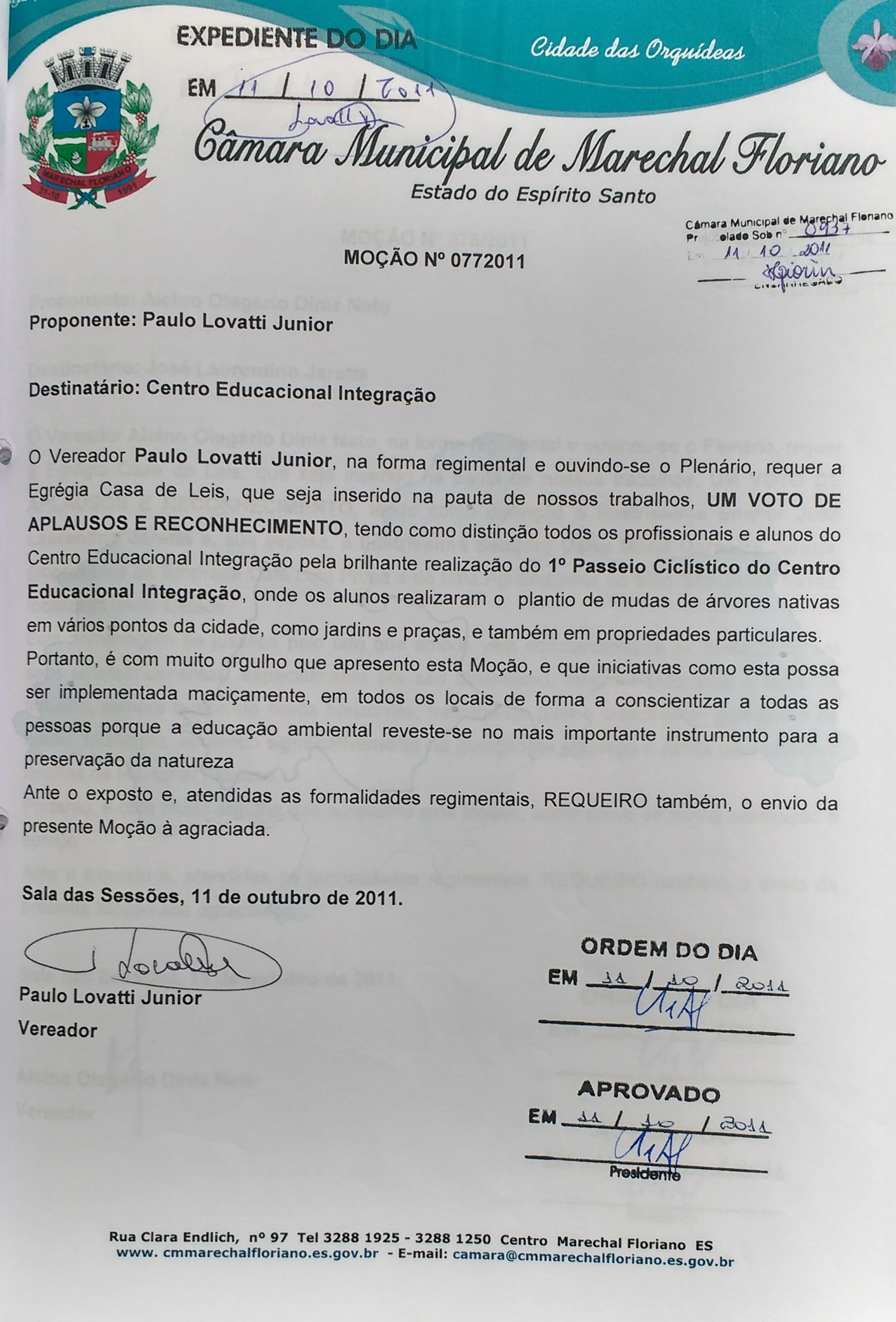 Protocolo: 771/2011, Data Protocolo:
