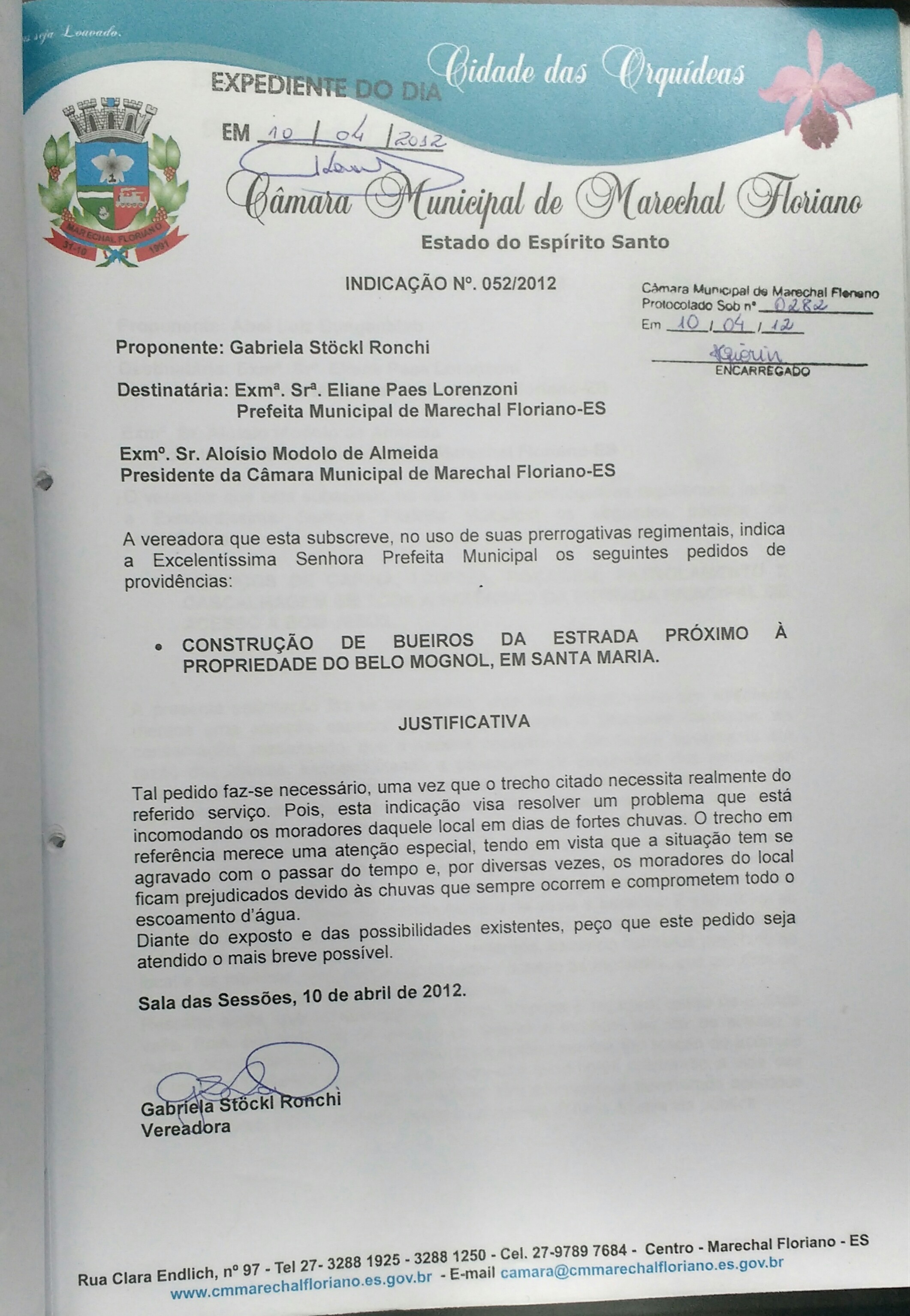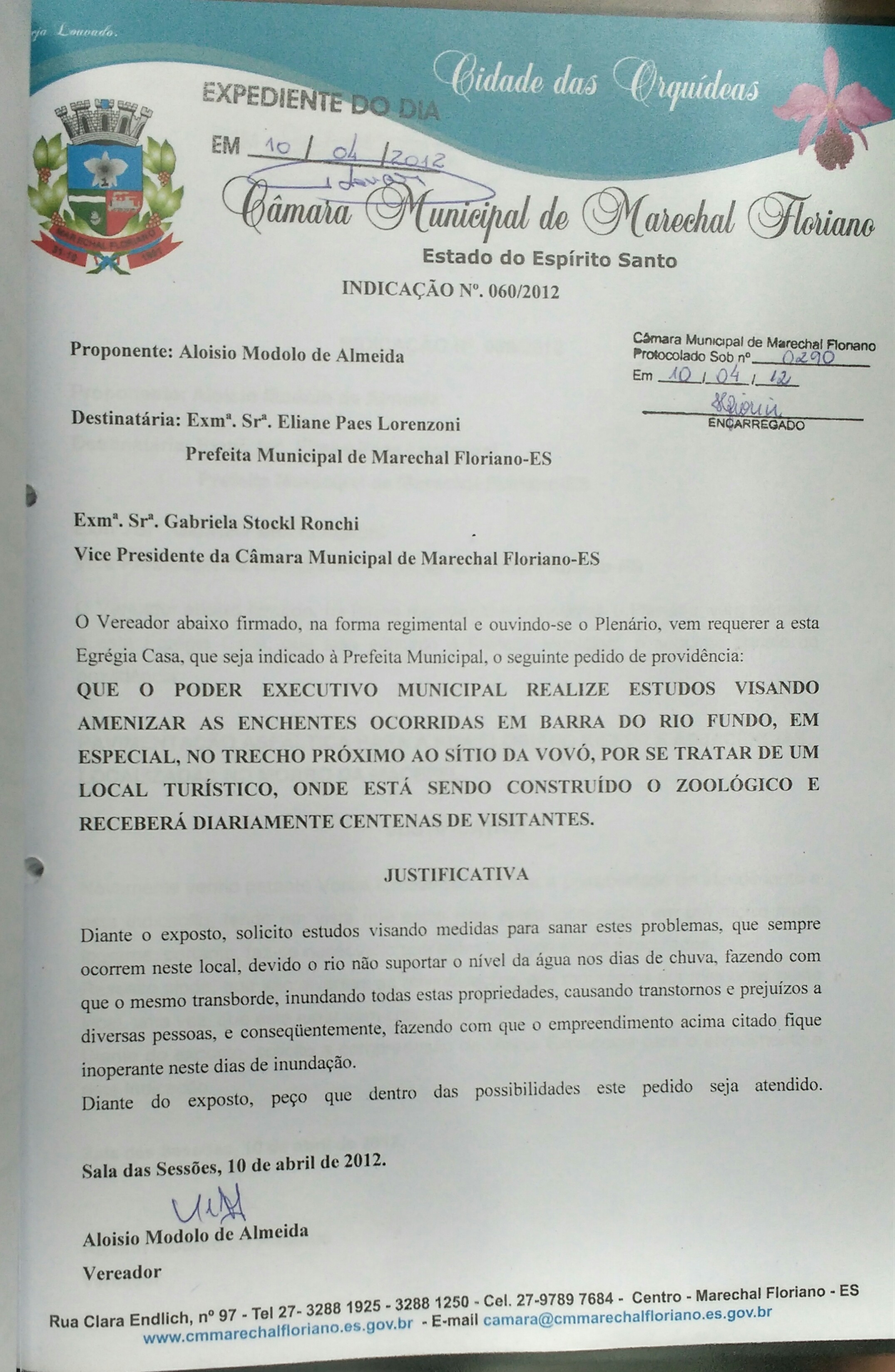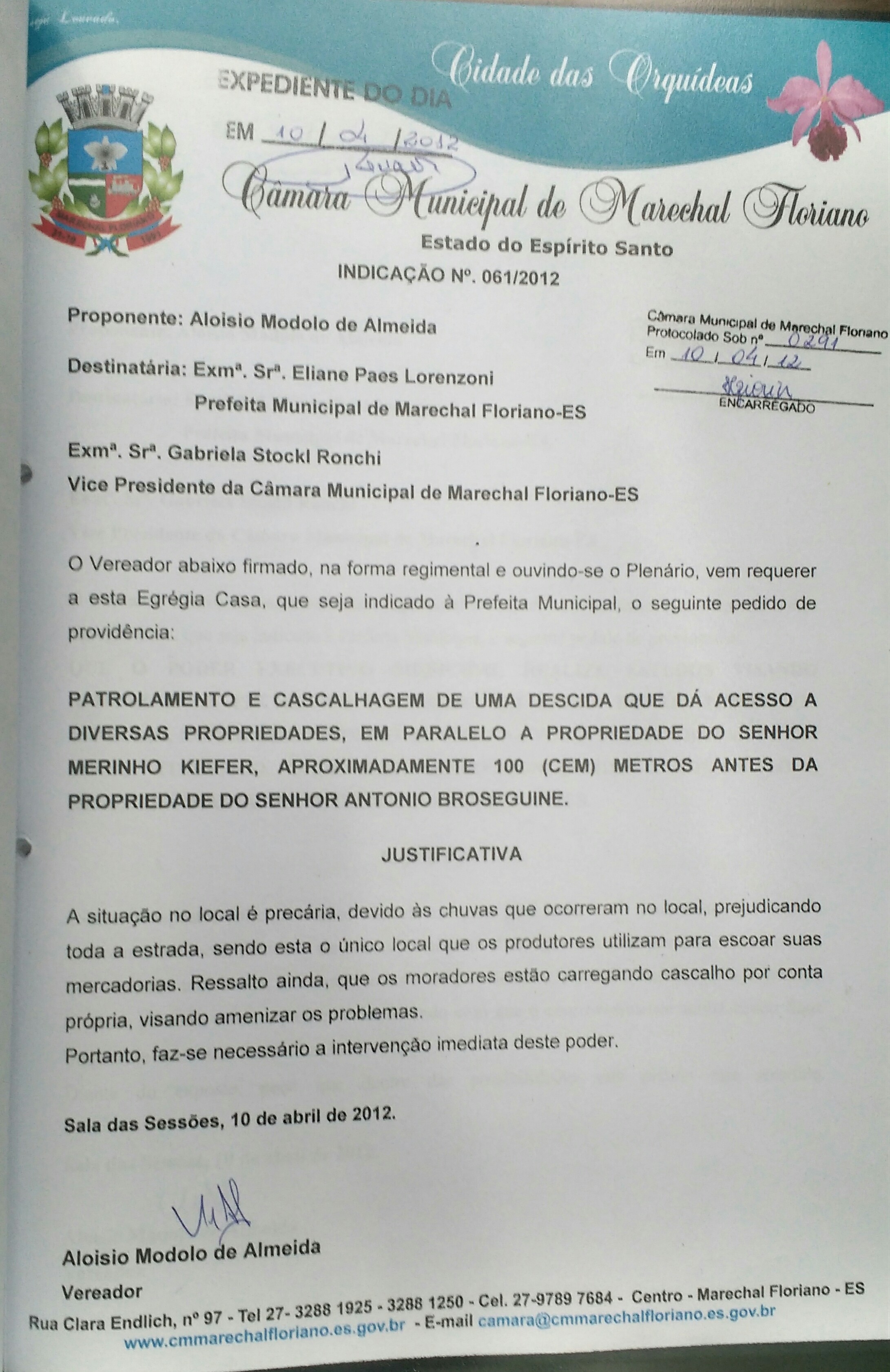 Protocolo: 291/2012, Data Protocolo: