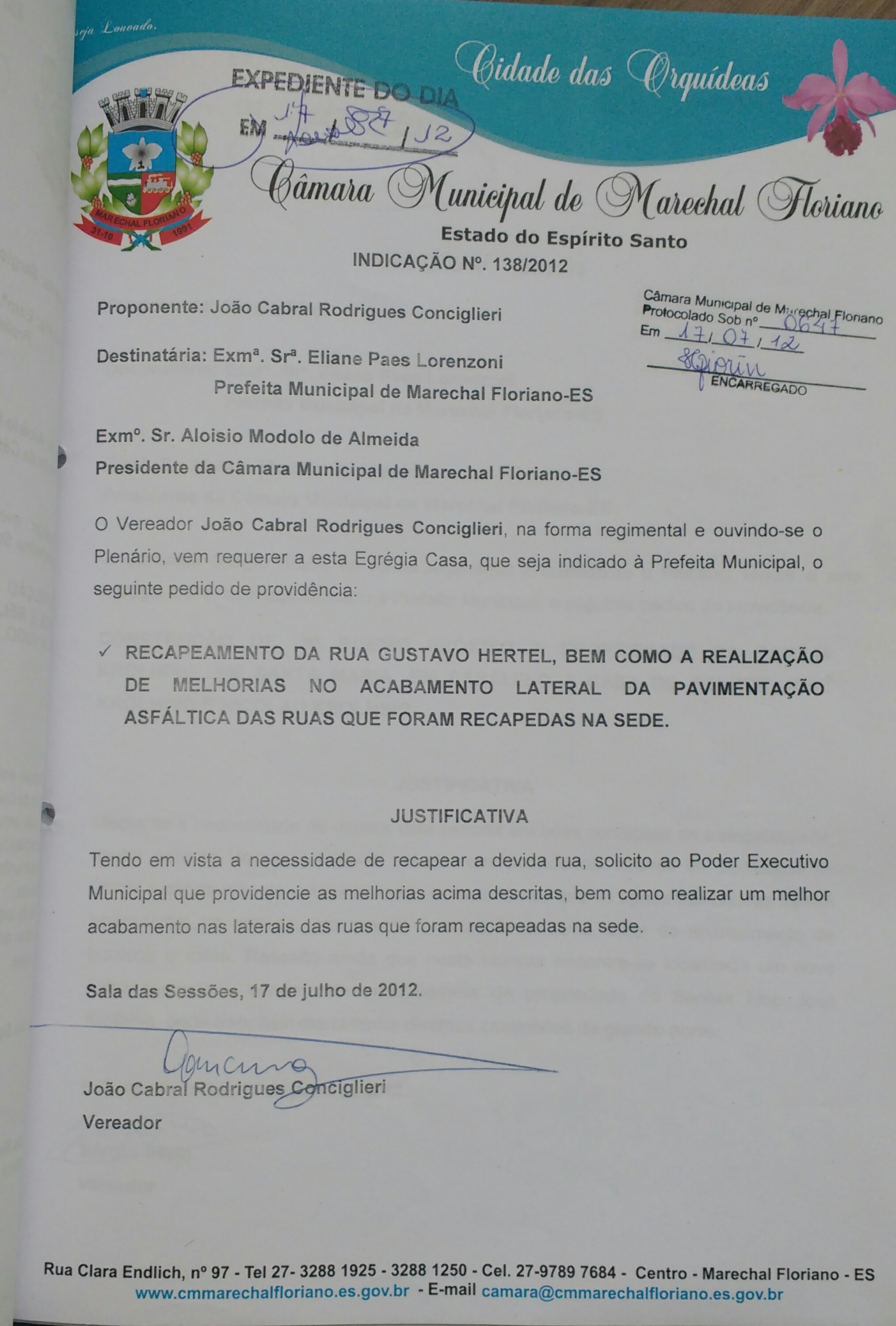 Protocolo: 647/2012, Data Protocolo: