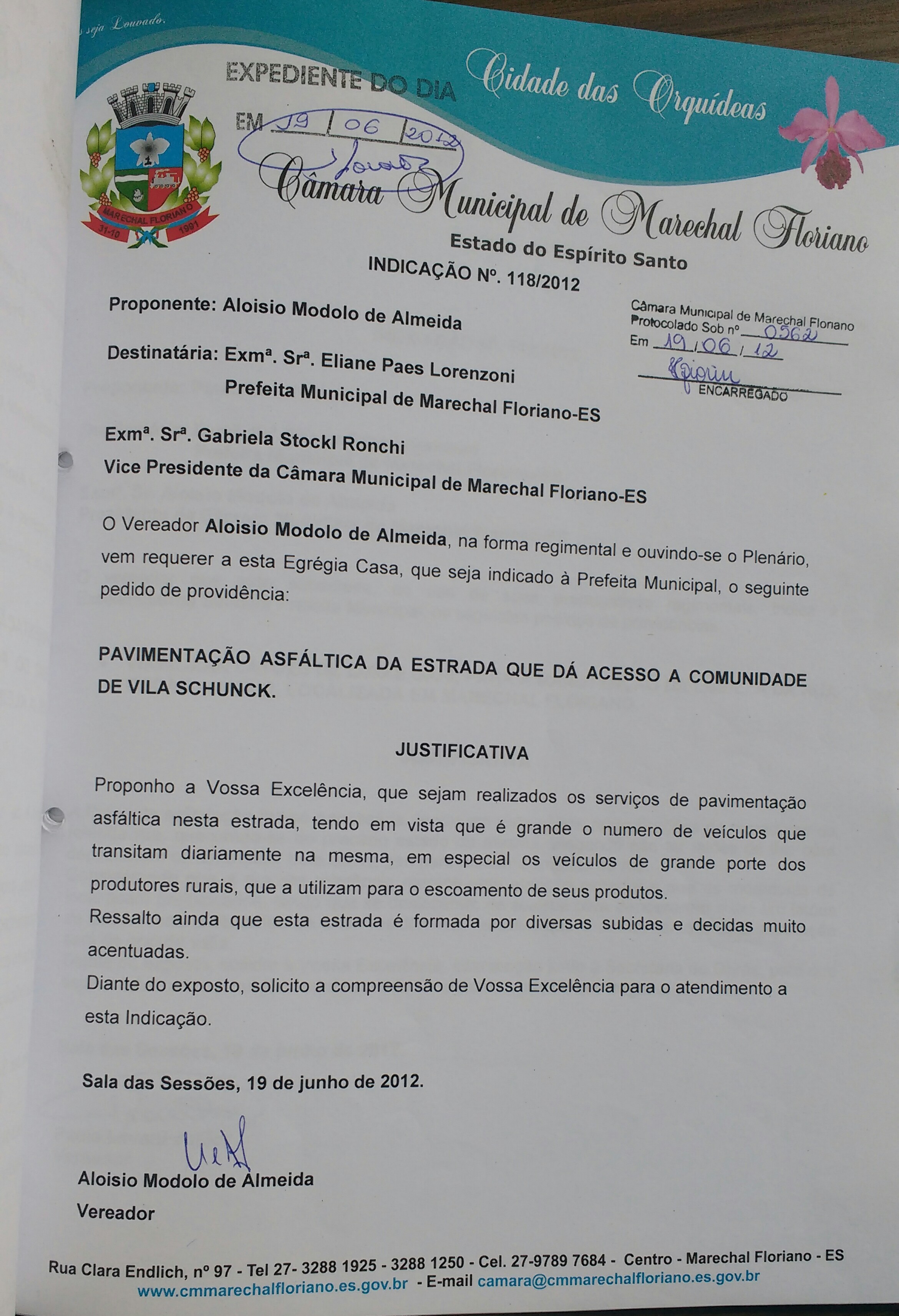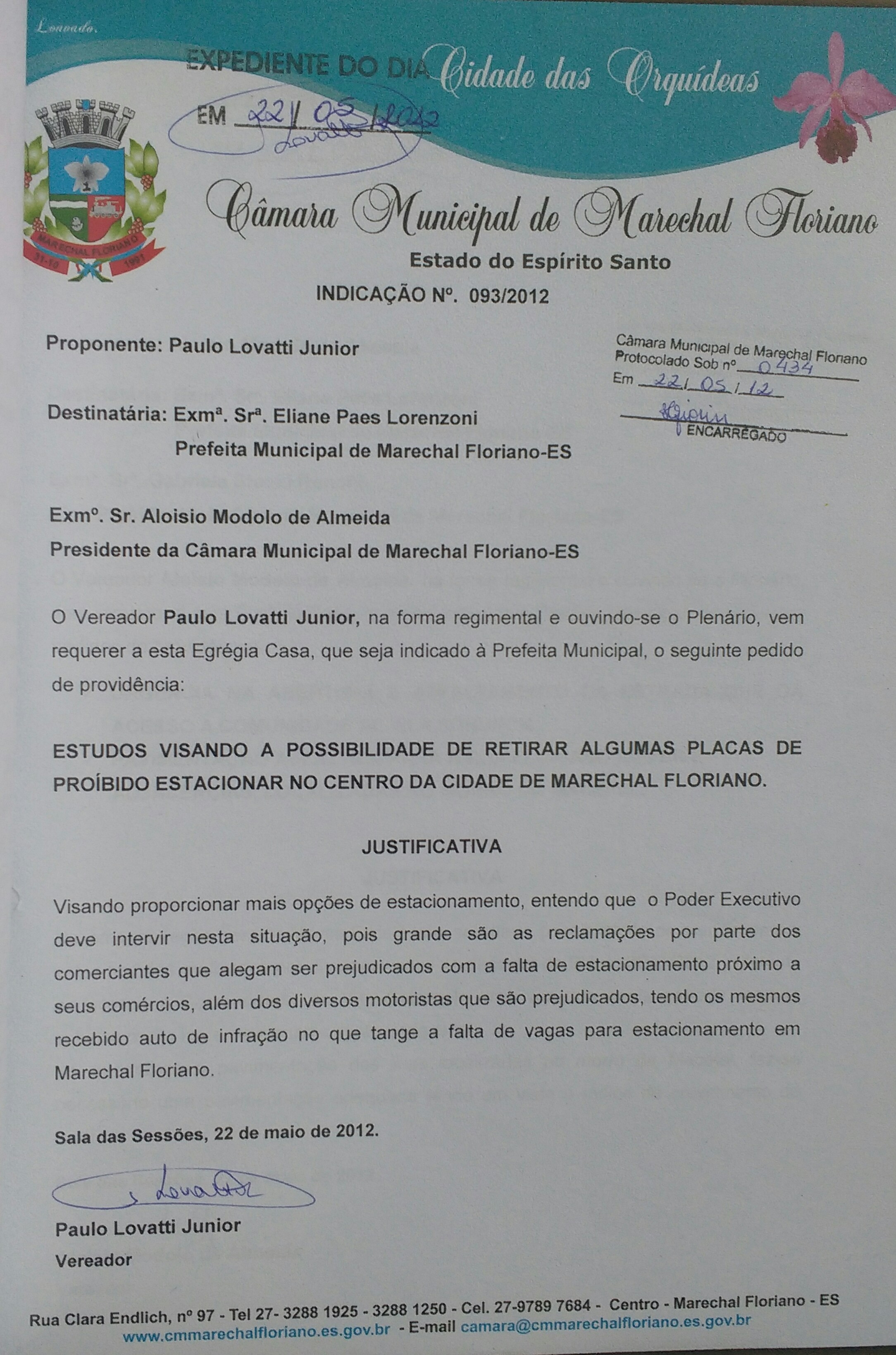 Protocolo: 511/2012, Data Protocolo: