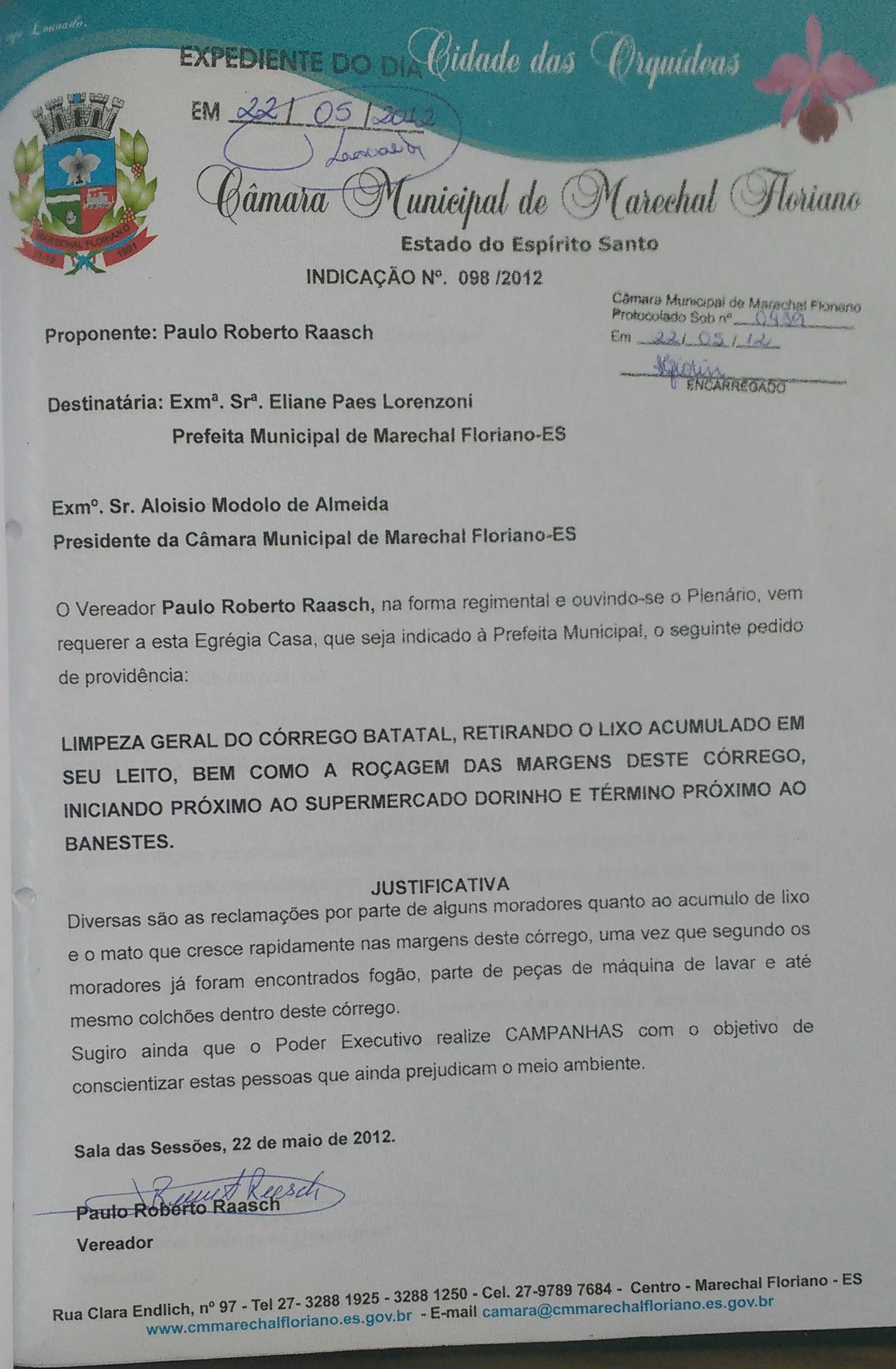 Protocolo: 505/2012, Data Protocolo: