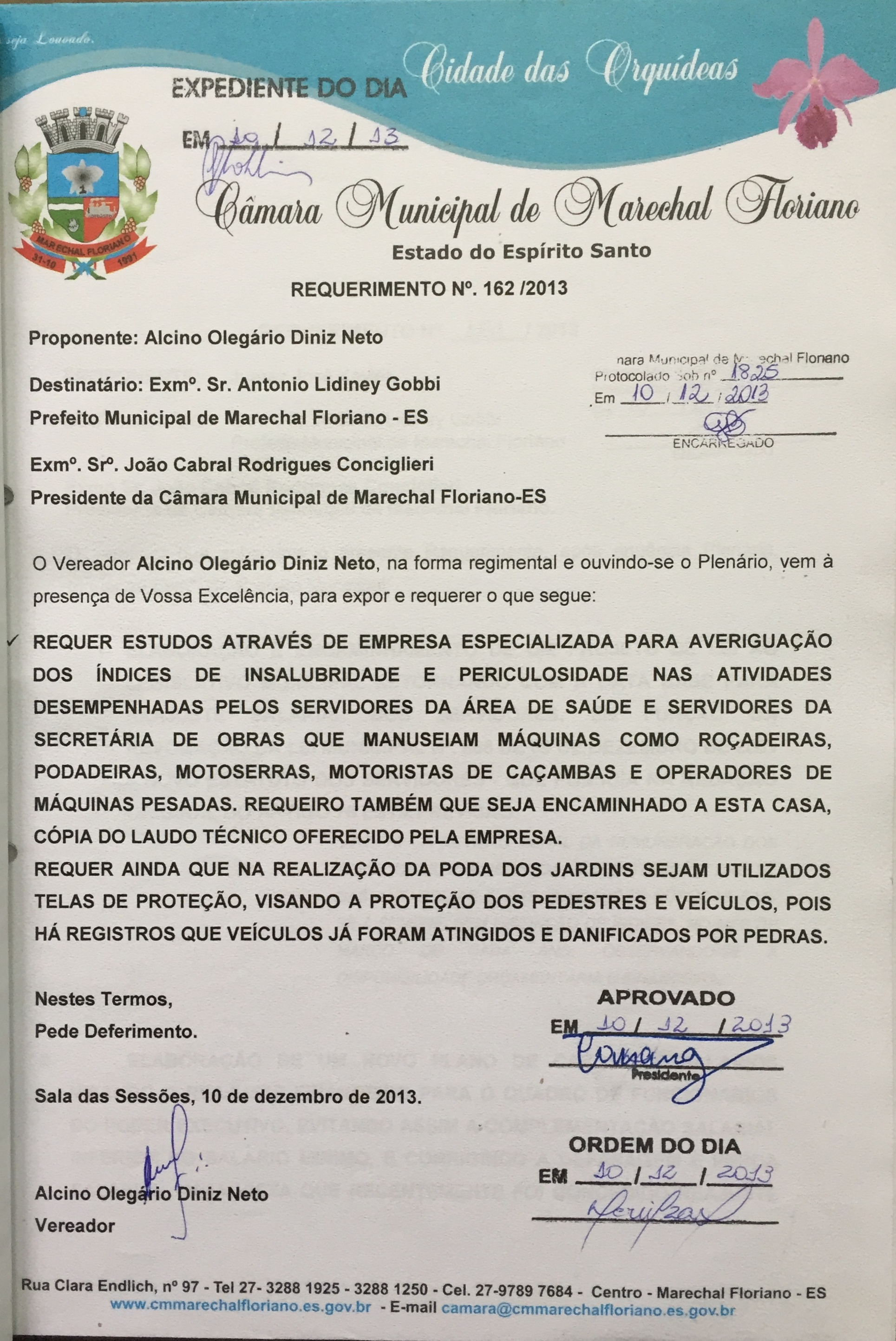 Protocolo: 1825/2013, Data Protocolo: