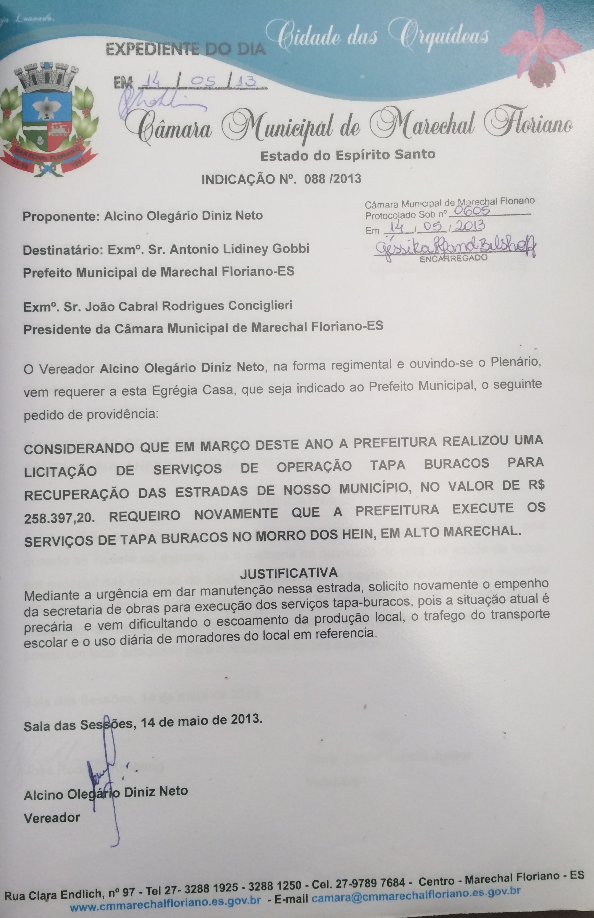 Protocolo: 605/2013, Data Protocolo: