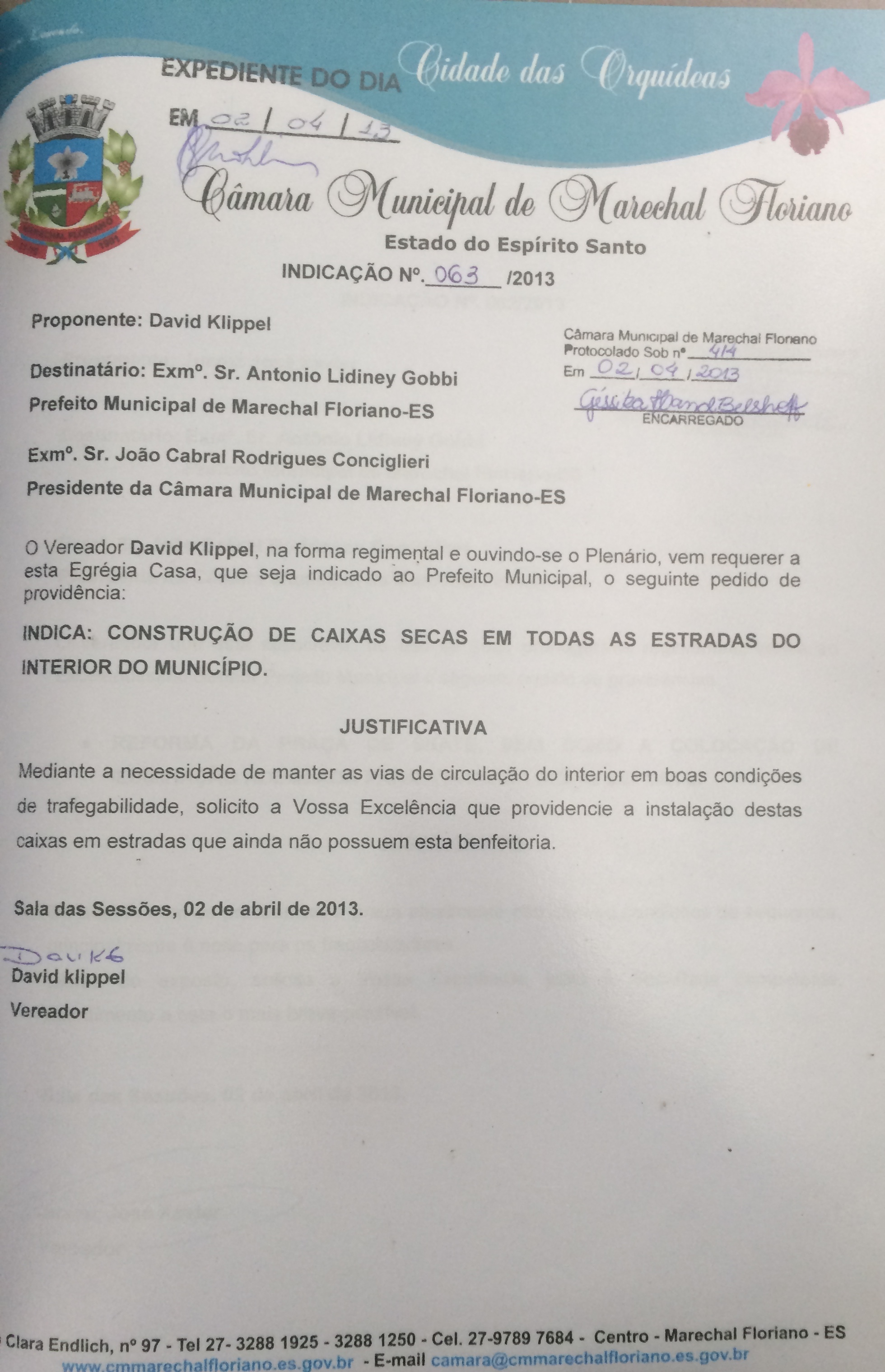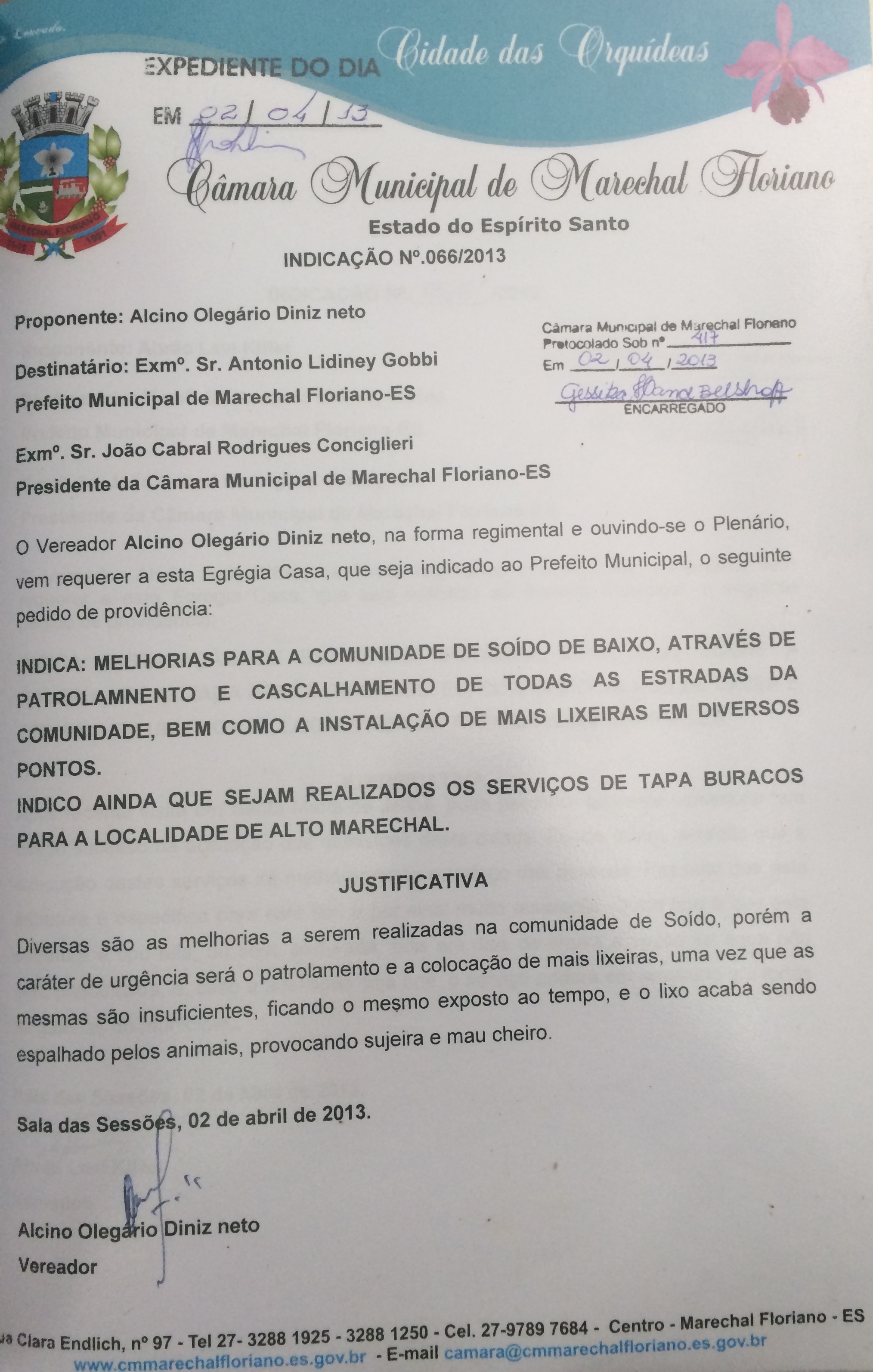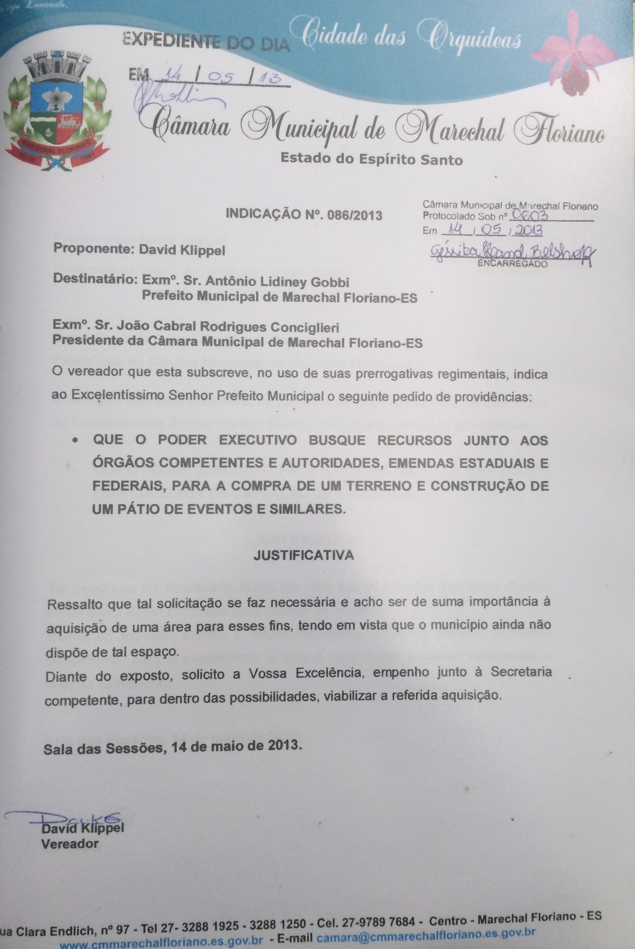 Protocolo: 602/2013, Data Protocolo: