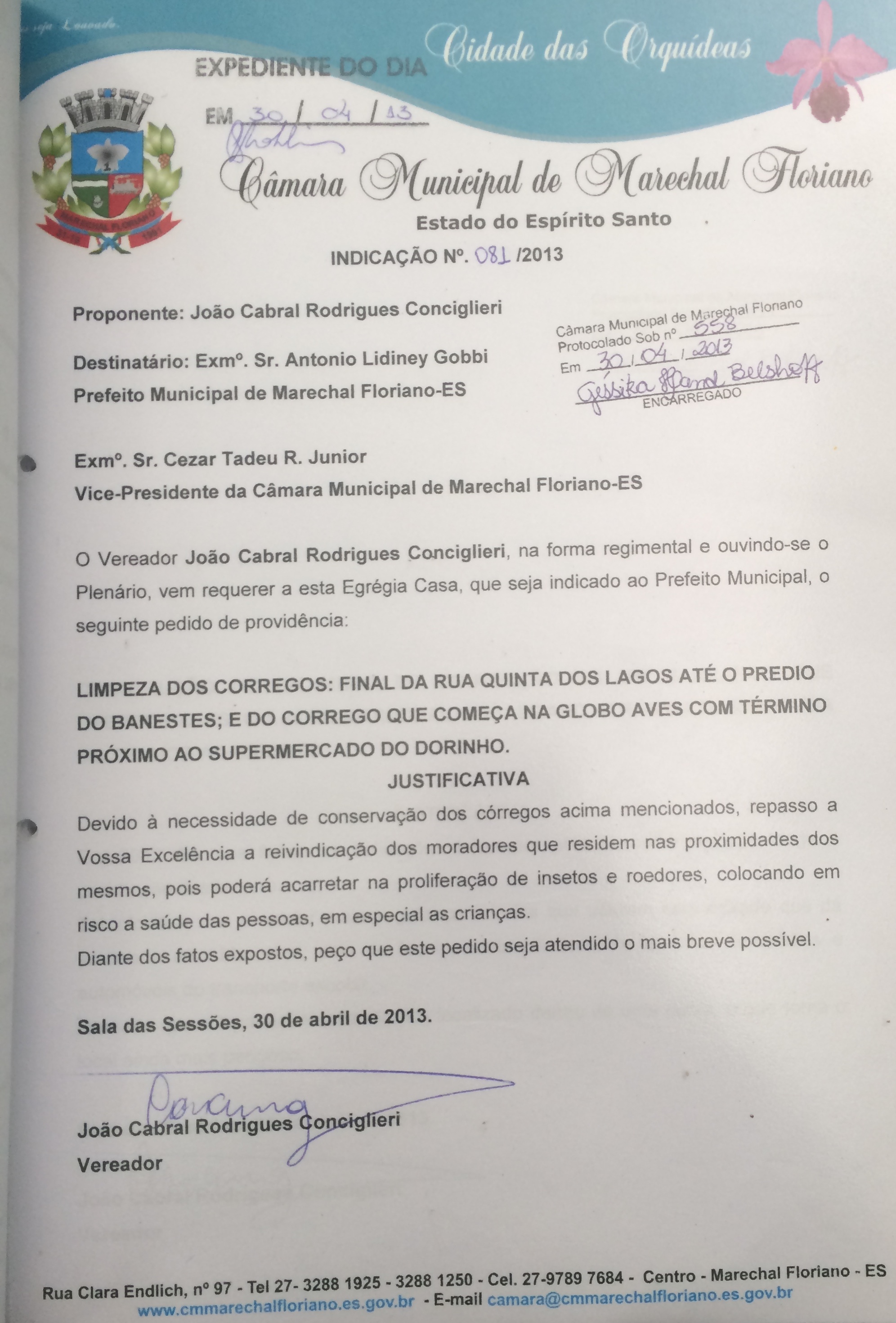 Protocolo: 558/2013, Data Protocolo: