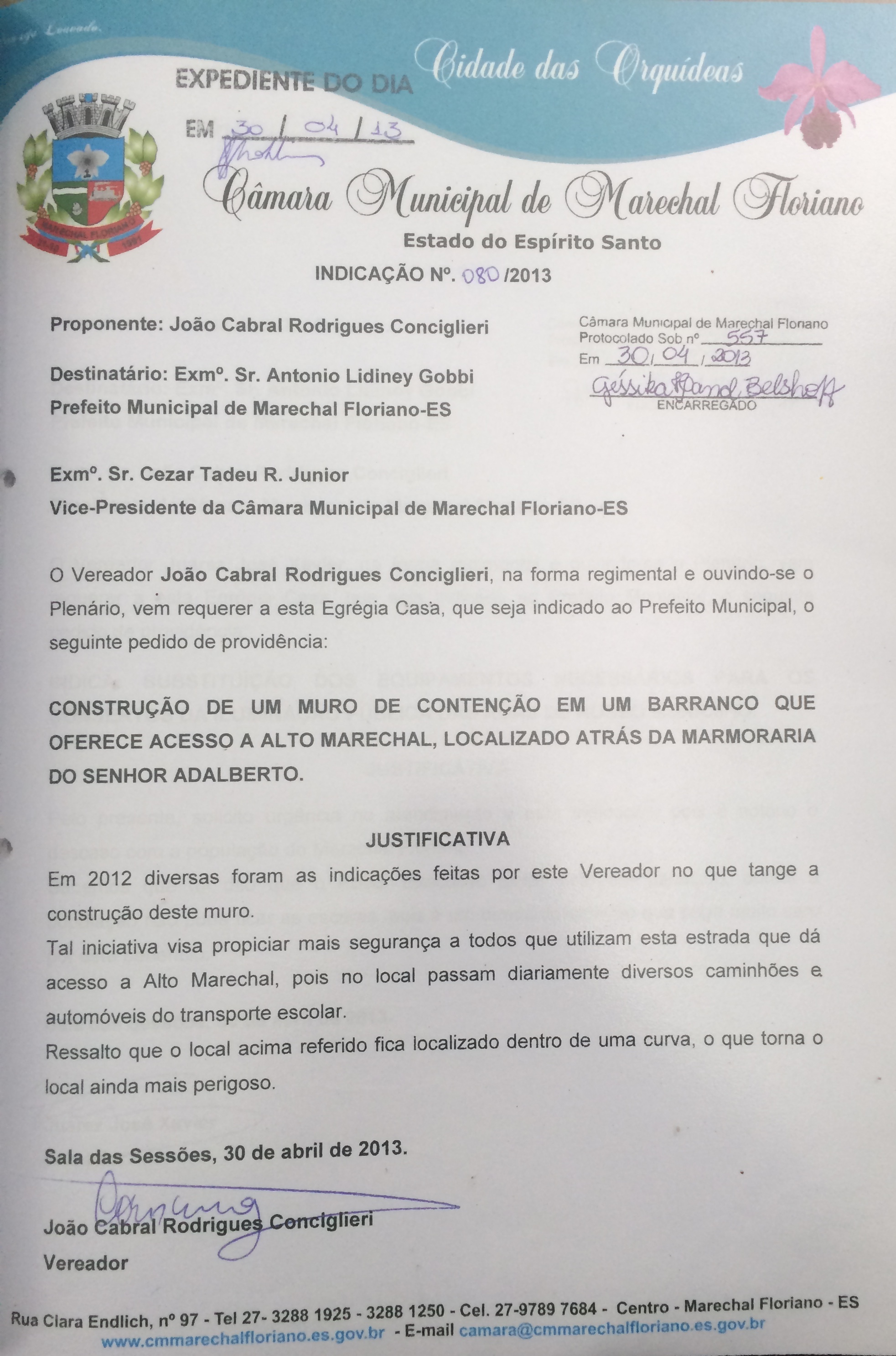 Protocolo: 557/2013, Data Protocolo: