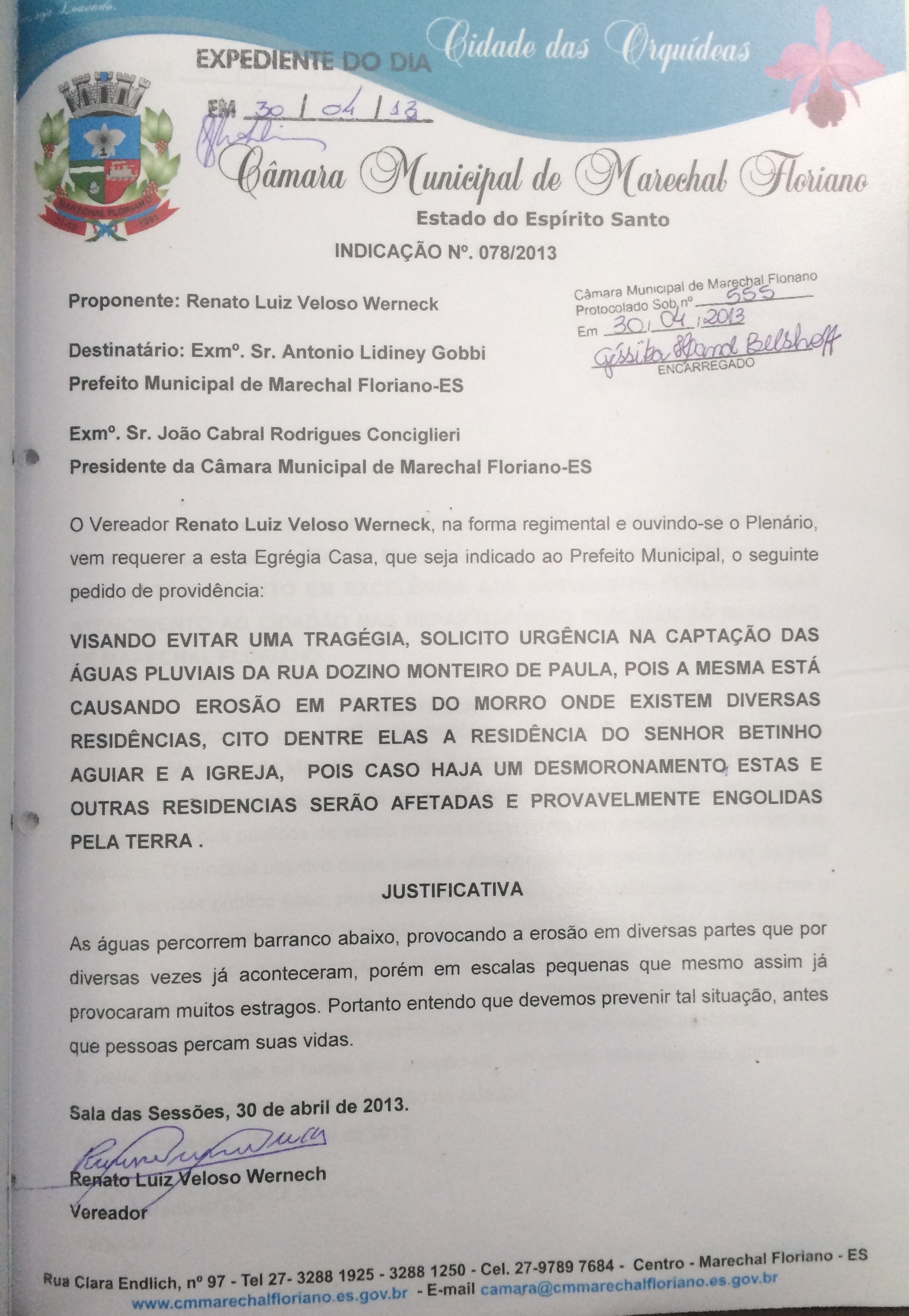Protocolo: 555/2013, Data Protocolo: