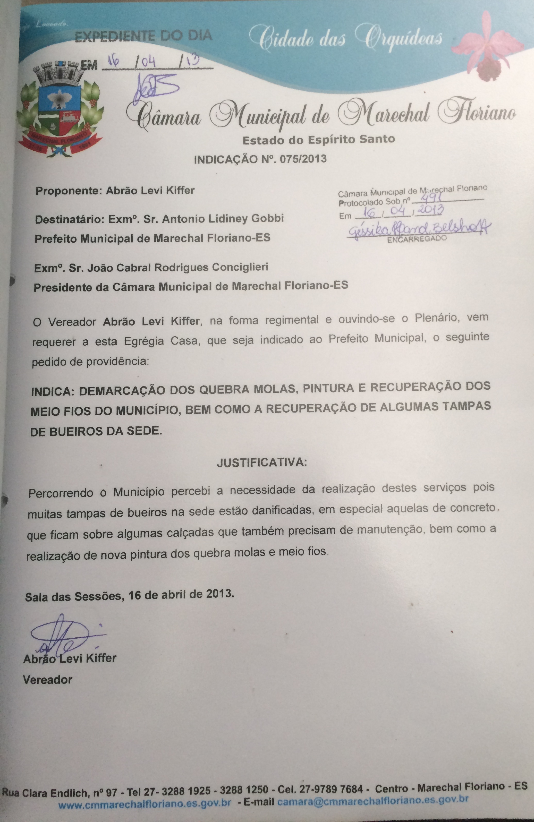 Protocolo: 491/2013, Data Protocolo: