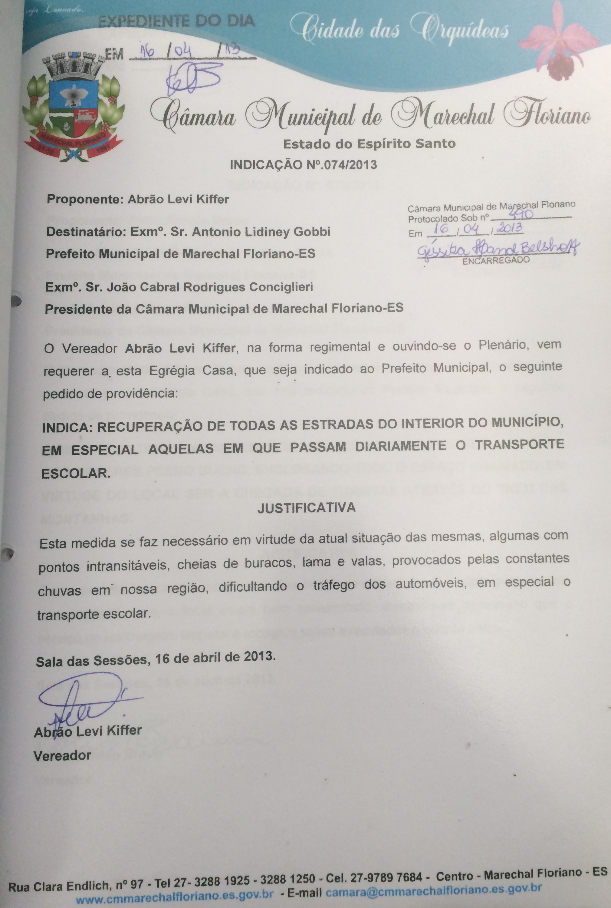 Protocolo: 490/2013, Data Protocolo: