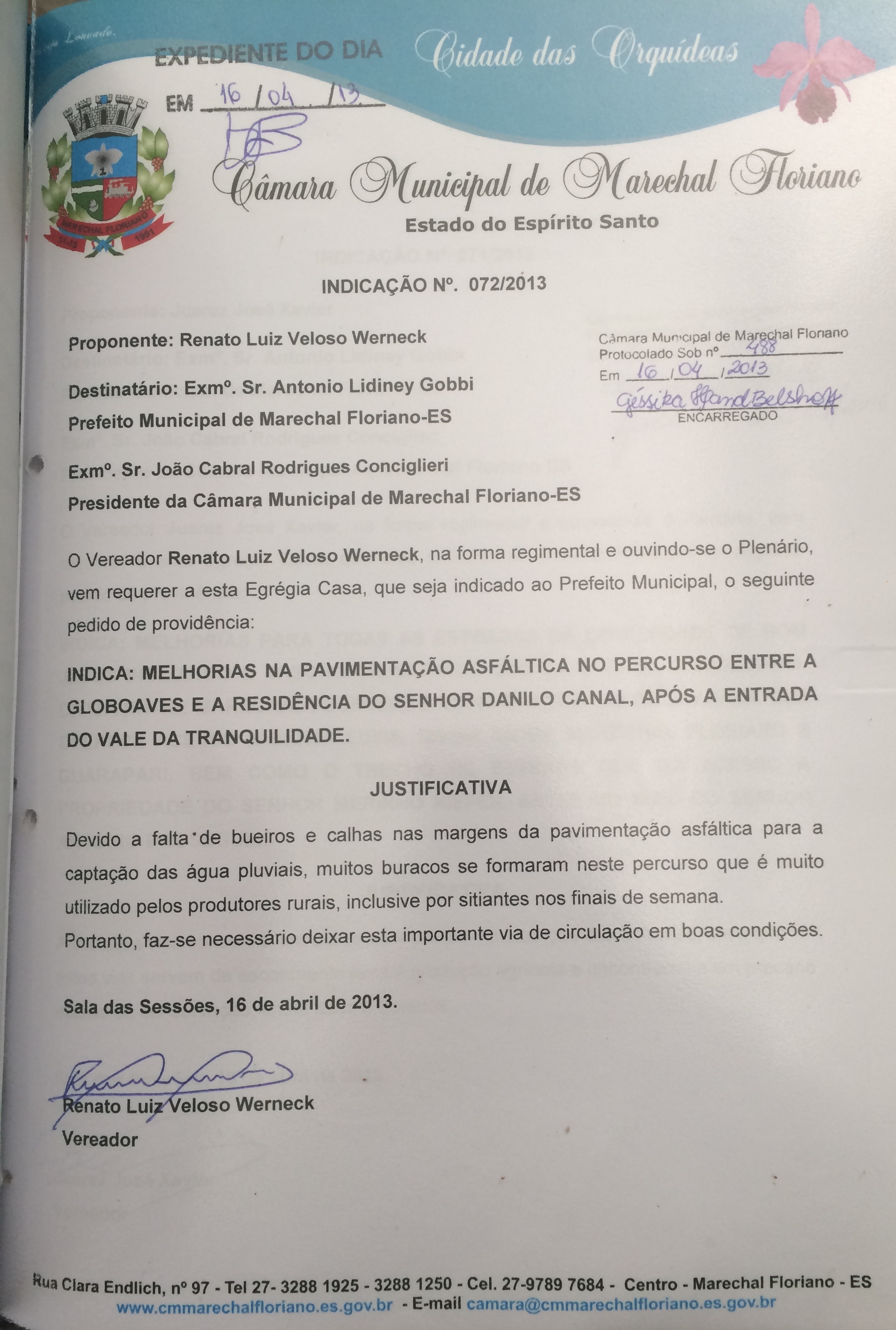 Protocolo: 488/2013, Data Protocolo: