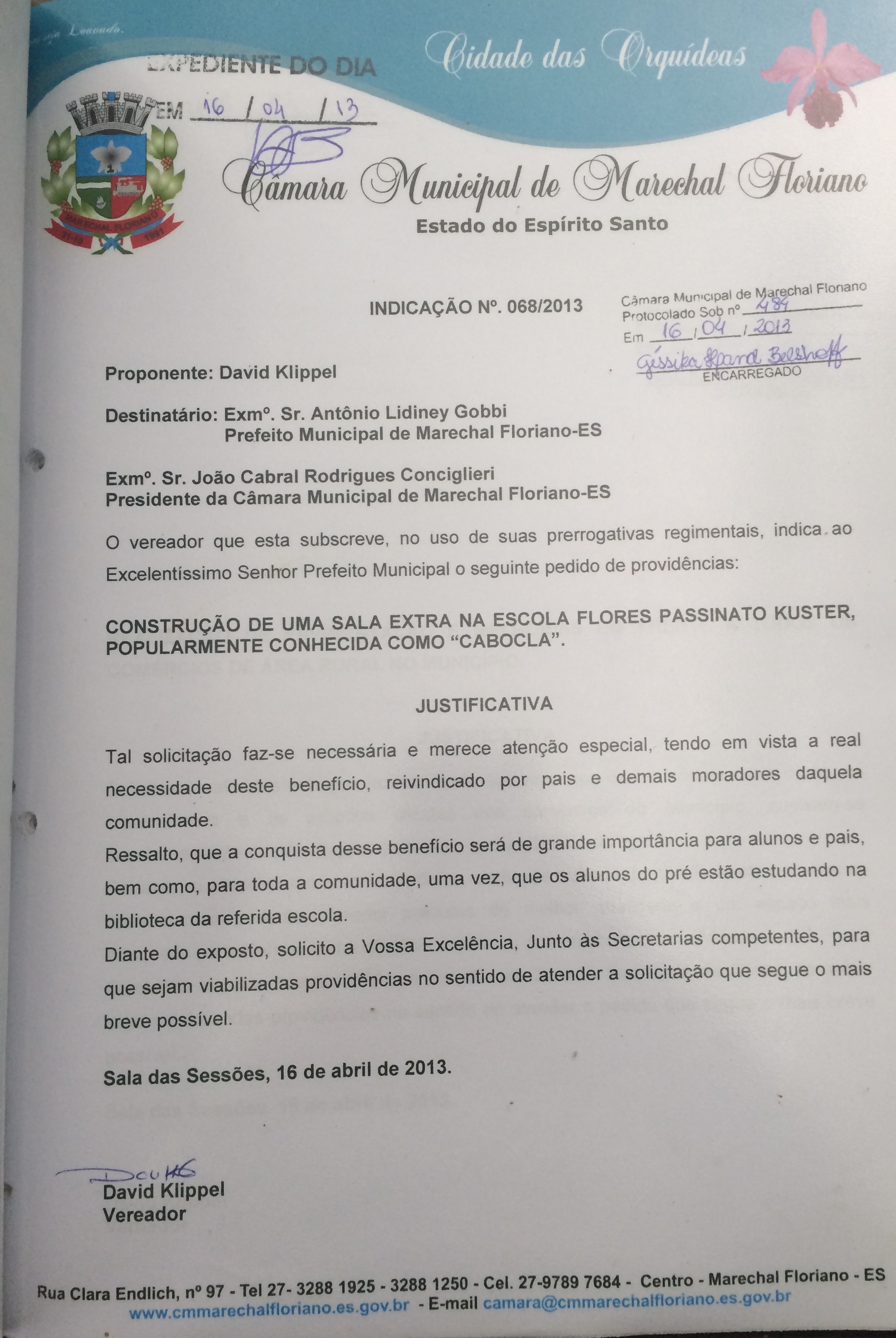 Protocolo: 484/2013, Data Protocolo: