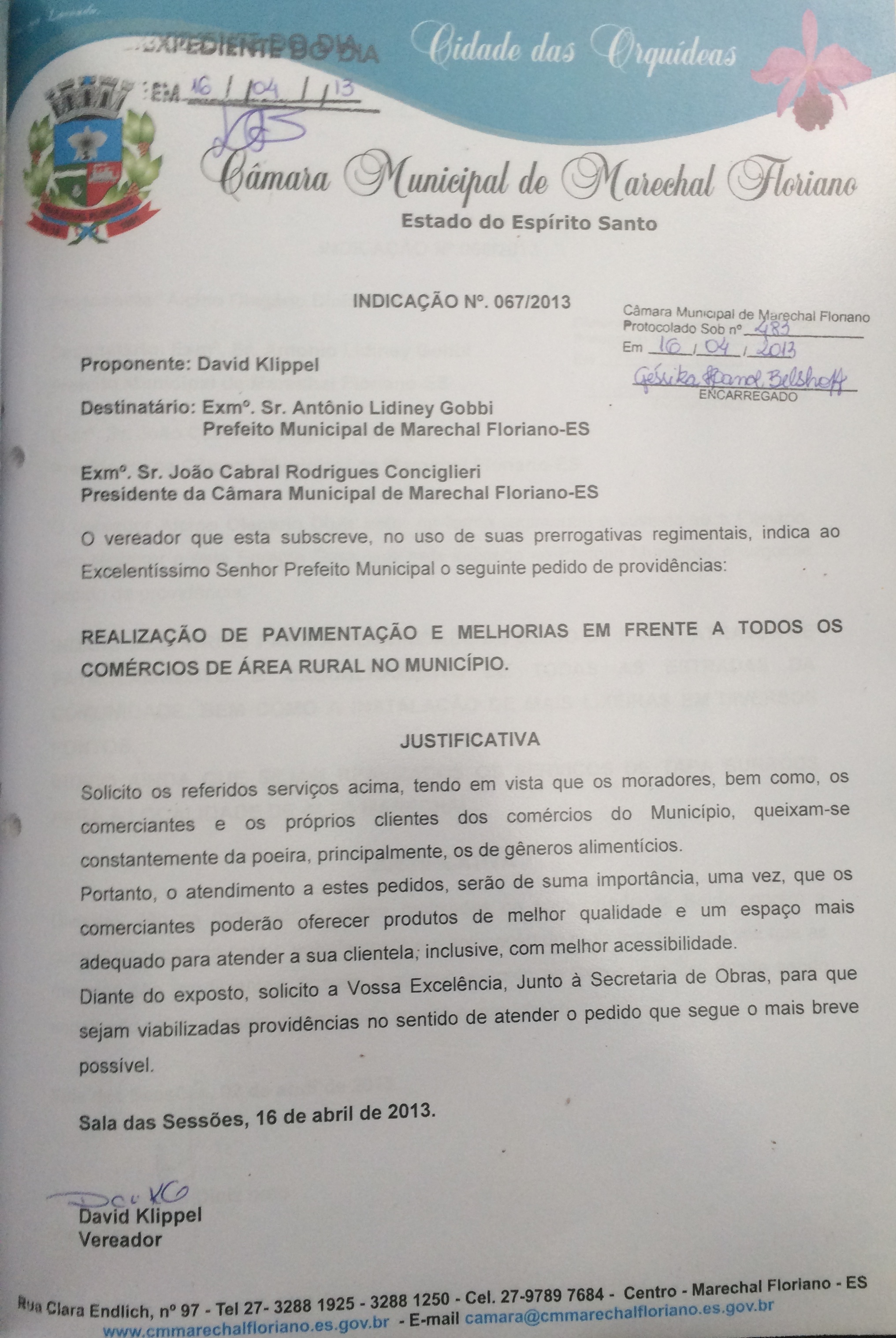 Protocolo: 483/2013, Data Protocolo: