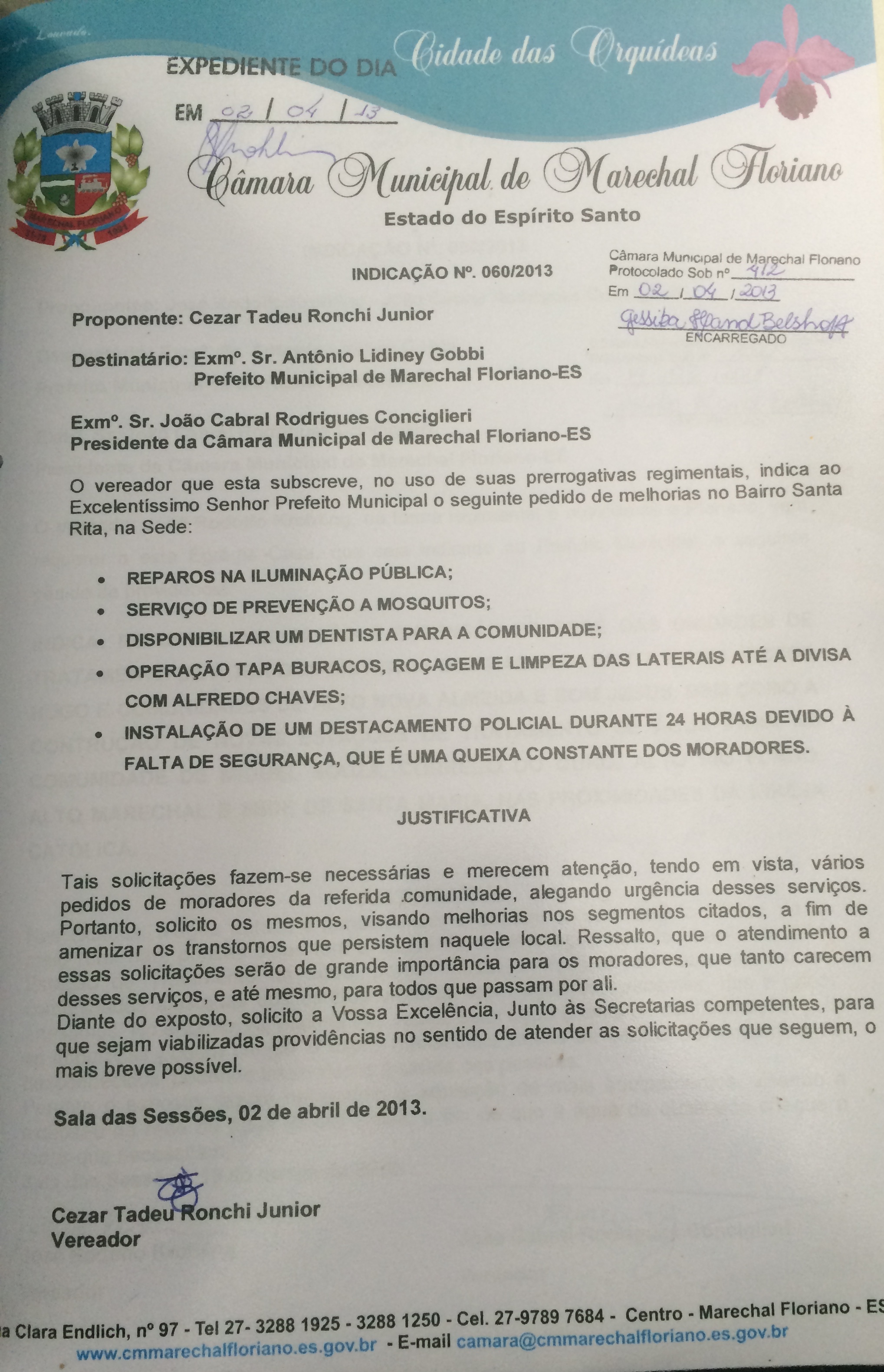 Protocolo: 412/2013, Data Protocolo: