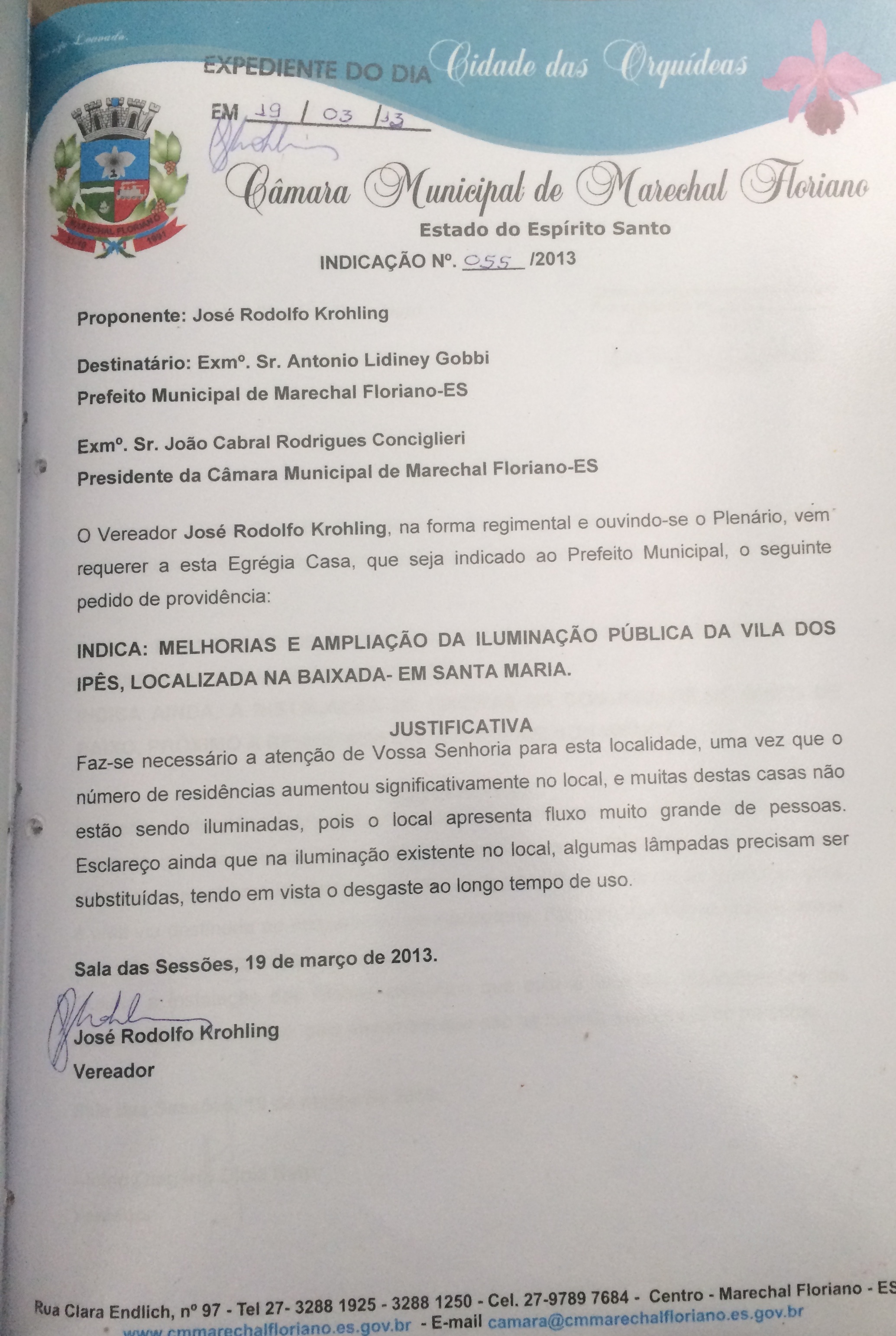 Ementa: INDICA: MELHORIAS E AMPLIAÇÃO DA ILUMINAÇÃO PÚBLICA DA VILA DOS IPÊS, LOCALIZADA NA BAIXADA - EM SANTA MARIA.