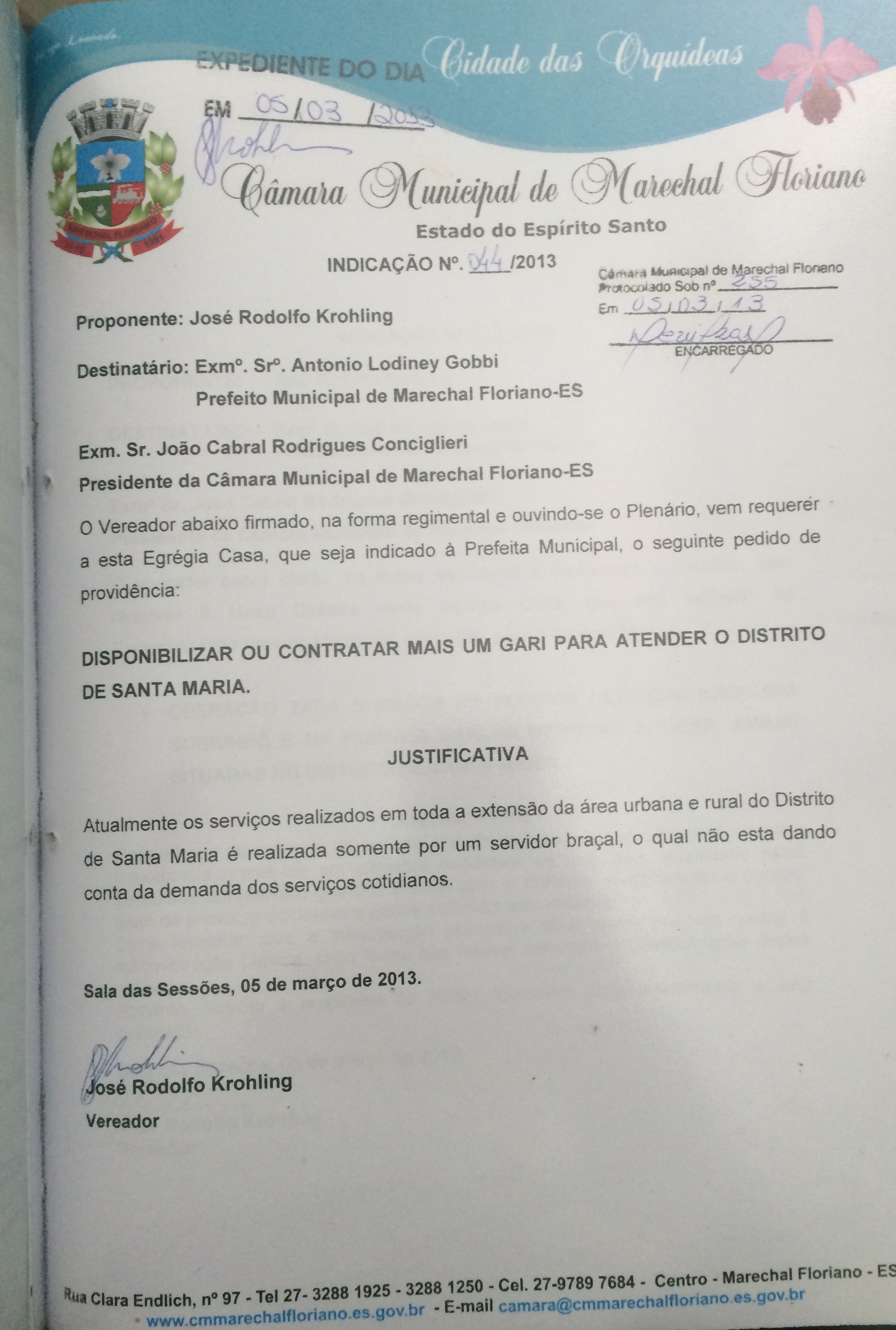 Protocolo: 255/2013, Data Protocolo: